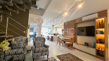(CÓD. AP399) Este deslumbrante apartamento duplex em um residencial em Jurerê é o lar dos sonhos para quem busca conforto e sofisticação à beira-mar. Com uma piscina de borda infinita e vista para o mar, academia, salão de festas e espaço gourmet, este condomínio oferece o melhor em lazer e entretenimento. O apartamento possui três dormitórios sendo duas suítes e a master possui sacada com vista para o mar, um espaçoso living, três banheiros, um lavabo, sacada com churrasqueira e será entregue todo mobiliado, pronto para uso. Com ar condicionado em todos os cômodos, o conforto está garantido em todas as estações do ano. Além disso, sua localização privilegiada, a apenas 150 metros da praia, e a proximidade de diversos serviços e restaurantes tornam este apartamento ainda mais especial. Não perca a oportunidade de viver com estilo e comodidade em Jurerê. Entre em contato conosco na Sandra Camacho e agende uma visita para conhecer este incrível apartamento. Valor de venda: R$ 3.200.000,00 Disponibilidade e preço sujeitos a confirmação.