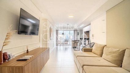 (CÓD. AP474) Apartamento mobiliado, localizado a apenas 150 metros da praia, com 2 dormitórios, sendo 1 suíte. Possui sala de estar e jantar integradas, cozinha planejada, sacada, além de 1 vaga de garagem e hobby box. O imóvel é totalmente mobiliado, oferecendo conforto e praticidade em cada ambiente. O condomínio conta com elevador, espaço fitness, piscina e espaço gourmet, proporcionando lazer e comodidade. Localizado perto de supermercado, lojas e farmácias.