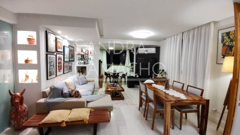 (CÓD. AP534) Amplo apartamento totalmente mobiliado. O imóvel possui uma área íntima bem definida, com hall de acesso que pode ser utilizado como escritório, além de duas suítes completas, ambas com closet e banheiro privativo, garantindo conforto e privacidade. A área social conta com sala de estar e jantar integradas à cozinha, criando um ambiente moderno e ideal para convivência, além de lavabo para maior praticidade. A sacada é integrada ao living, fechada com sistema Reiki e equipada com churrasqueira. O apartamento possui três frentes (Norte, Leste e Sul), com ventilação cruzada que proporciona excelente iluminação natural e ambientes sempre arejados. Dispõe ainda de área de serviço independente e uma vaga de garagem, com espaço para até dois veículos. Entre em contato agora e agende sua visita com um de nossos corretores.
