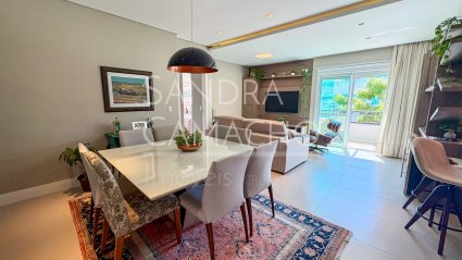 (CÓD. AP522) Apartamento com dois dormitórios (planta original com três) ambos suítes, além de lavabo, projetado para oferecer conforto e funcionalidade. Conta com cozinha integrada, sala de estar e jantar bem distribuídas, sacada com churrasqueira e fechada com vidros com sistema de abertura total, além de vista para alameda arborizada, ideal para momentos de lazer, além de área de serviço. O imóvel está mobiliado, pronto para morar, dispõe de garagem dupla e hobby box. O condomínio oferece elevador, piscina e salão de festas. Localizado em região privilegiada, próximo a supermercado e farmácia, a apenas 250 metros da praia.