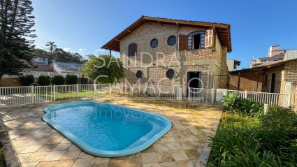 (CÓD. OL235) Casa com amplo terreno e piscina, em rua tranquila de Canasvieiras e a apenas 450 metros da praia. Casa com 02 pavimentos, 04 dormitórios, sendo 01 suíte, cozinha espaçosa e sala de jantar com churrasqueira. Terreno com 506m², com bastante área de jardim. Imóvel com escritura pública e viabilidade mista.